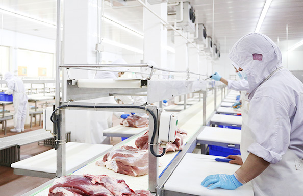 賓西肉業項目于2009年正式啟動,車間全部按歐盟衛生標準設計建造。全套引進德國伴斯、荷蘭斯托克公司的生豬屠宰、分割系統。具備年屠宰分割50萬頭生豬,加工18萬噸冷鮮、速凍產品以及8萬噸高檔肉制品產能,產品達到出口歐州、中東、日、韓等國家和地區的標準。